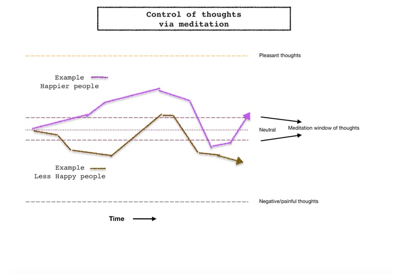 I've drawn up this little diagram to help illustrate this, but maybe I'm made the font a bit too small. The line above ( orange ) is 'pleasant thought' and the below is 'painful/negative thoughts'